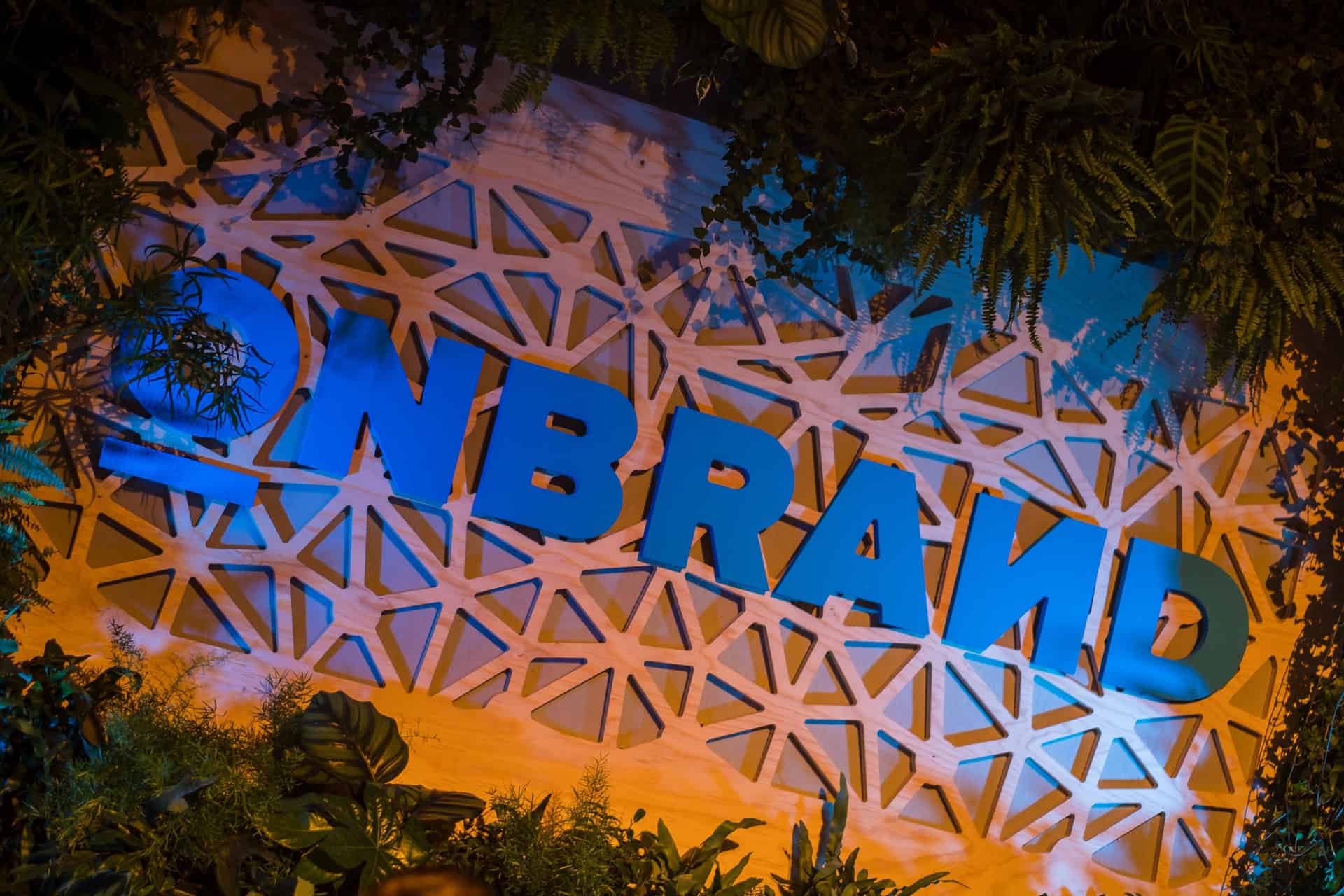 Voor OnBrand was de gehele evenementenlocatie van SugarFactory beschikbaar. Er werden twee hoofdpodia opgebouwd, twee workshopruimten geconstrueerd en een speciaal Brand Tech podium gecreëerd. Ook de plaatsing van de VIP-ontvangst op het zogenaamde suikerdek was een vondst; subtiel afgescheiden en toch onderdeel van de ambiance van de conferentie. Daarnaast waren er tal van lounge plekken, een outdoor foodplein en een partner ruimte waar kleinere ontmoetingsplekken werden ingericht, geschikt voor persoonlijke contacten.