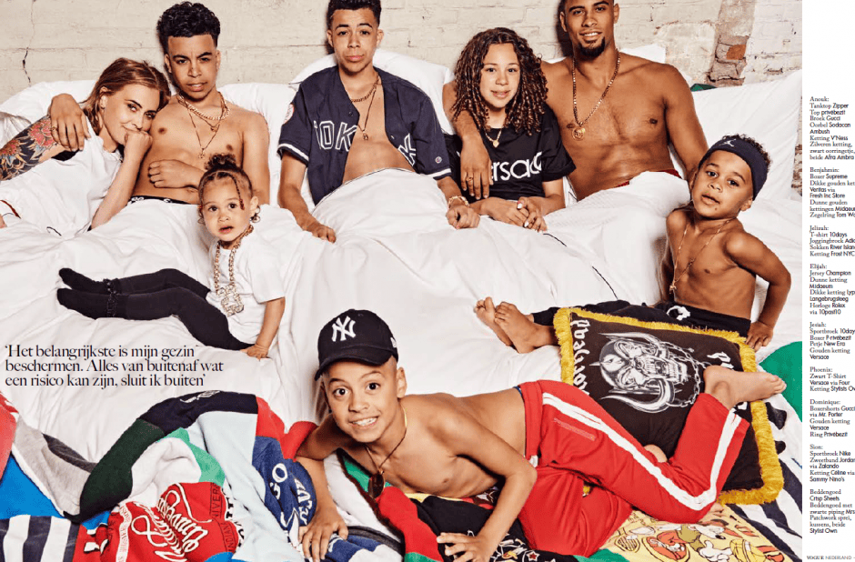 Auf dem Titel der Oktoberausgabe der Vogue Netherlands steht der niederländische Stolz Anouk mit ihrer ganzen Familie. Die Sängerin strahlt neben ihrer großen Liebe Dominique und ihren sechs Kindern Benjahmin Kingsley, Elijah Jeremiah, Phoenix Ray, Jesiah Dox, Sion Jethroe und Jelizah Rose. Zum ersten Mal und exklusiv für die Vogue zusammen vor der Kamera von Marc de Groot, bei SugarFactory!